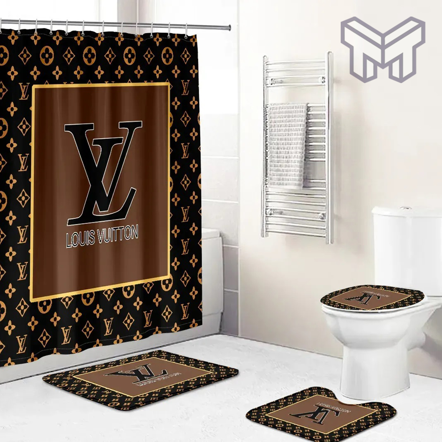 lv2 Black Fashion Luxury Brand Premium Bathroom Set Shower Curtain HG And Bath Mat