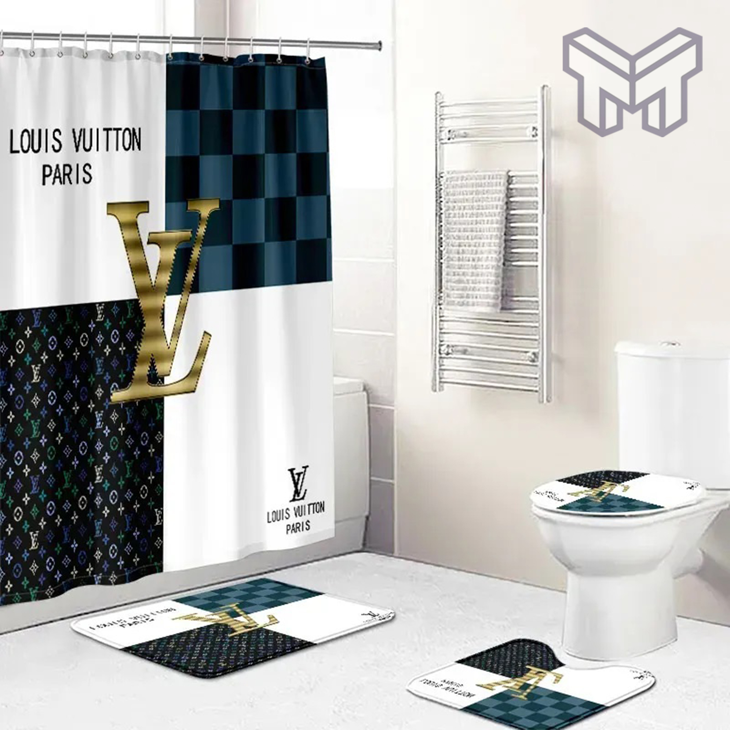 LV2 Fashion Logo Limited Luxury Brand Bathroom Set NNA Home Decor 69 Shower Curtain And Rug Toilet Seat Lid Covers Bathroom Set NNA