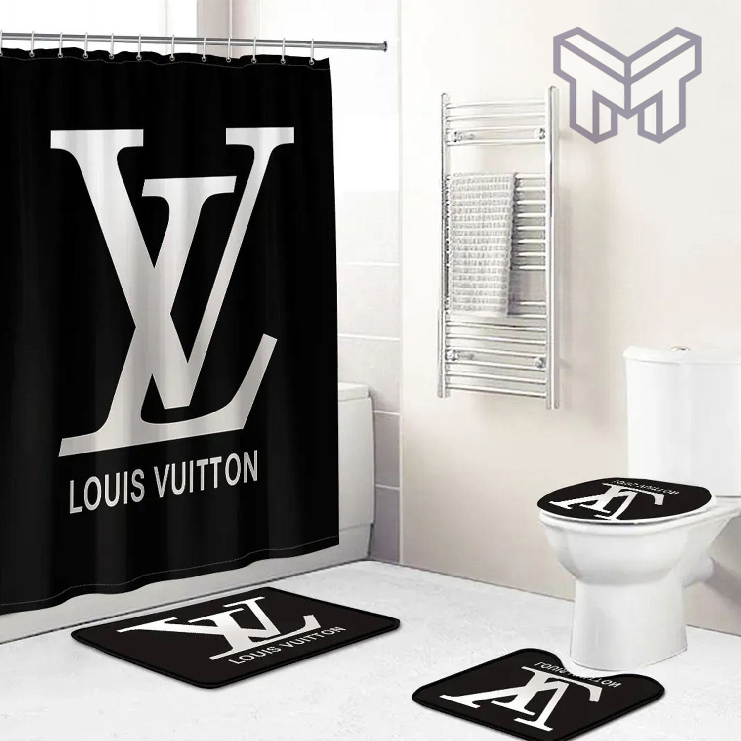 LV2 Fashion Logo Limited Luxury Brand Bathroom Set NNA Home Decor 76 Shower Curtain And Rug Toilet Seat Lid Covers Bathroom Set NNA