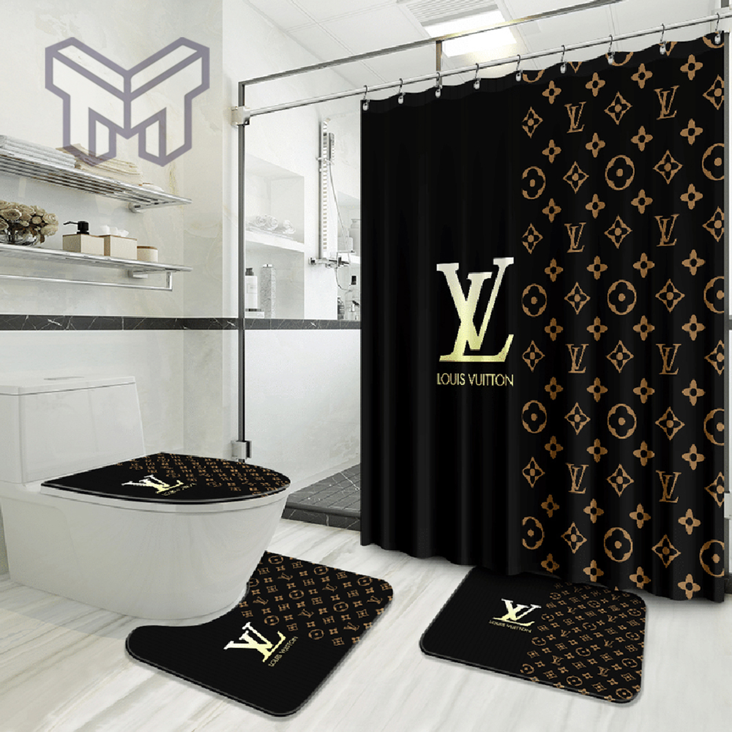 lv2 Black Fashion Luxury Brand Premium Bathroom Set Shower Curtain HG And Bath Mat