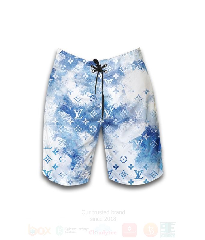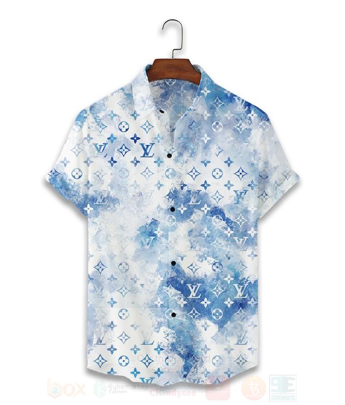 lv2 Light Blue Luxury Brand Hawaiian Shirt And Shorts Or Flip flops HG