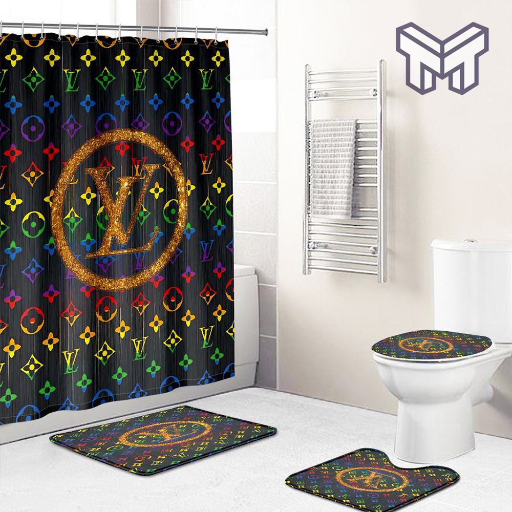 LV2 lv rainbow Bathroom Set NNA hot 2023 luxury shower curtain bath rug mat home decor
