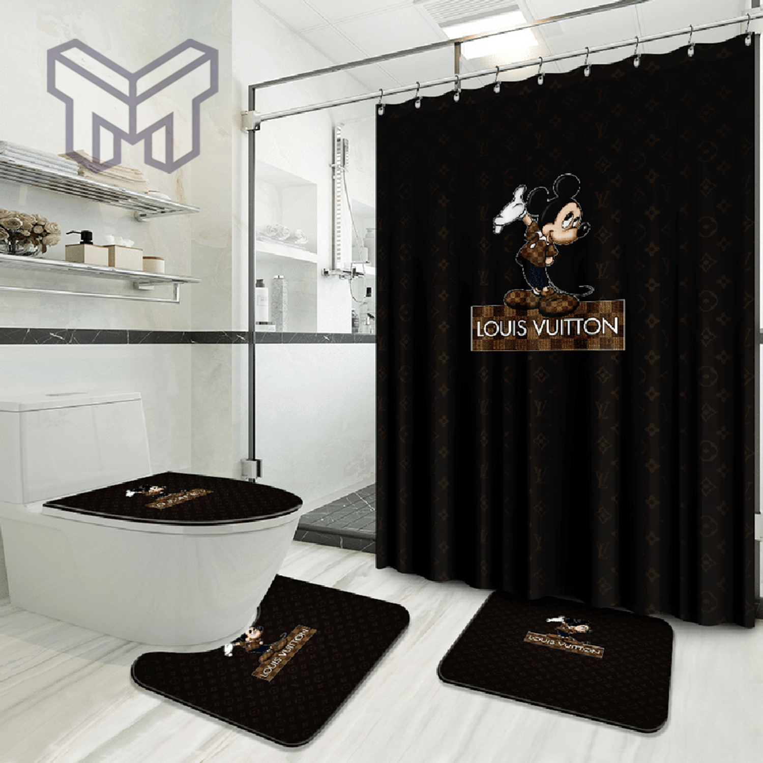 LV2 Mickey Fashion Logo Luxury Brand Bathroom Set NNA Home Decor Shower Curtain And Rug Toilet Seat Lid Covers Bathroom Set NNA