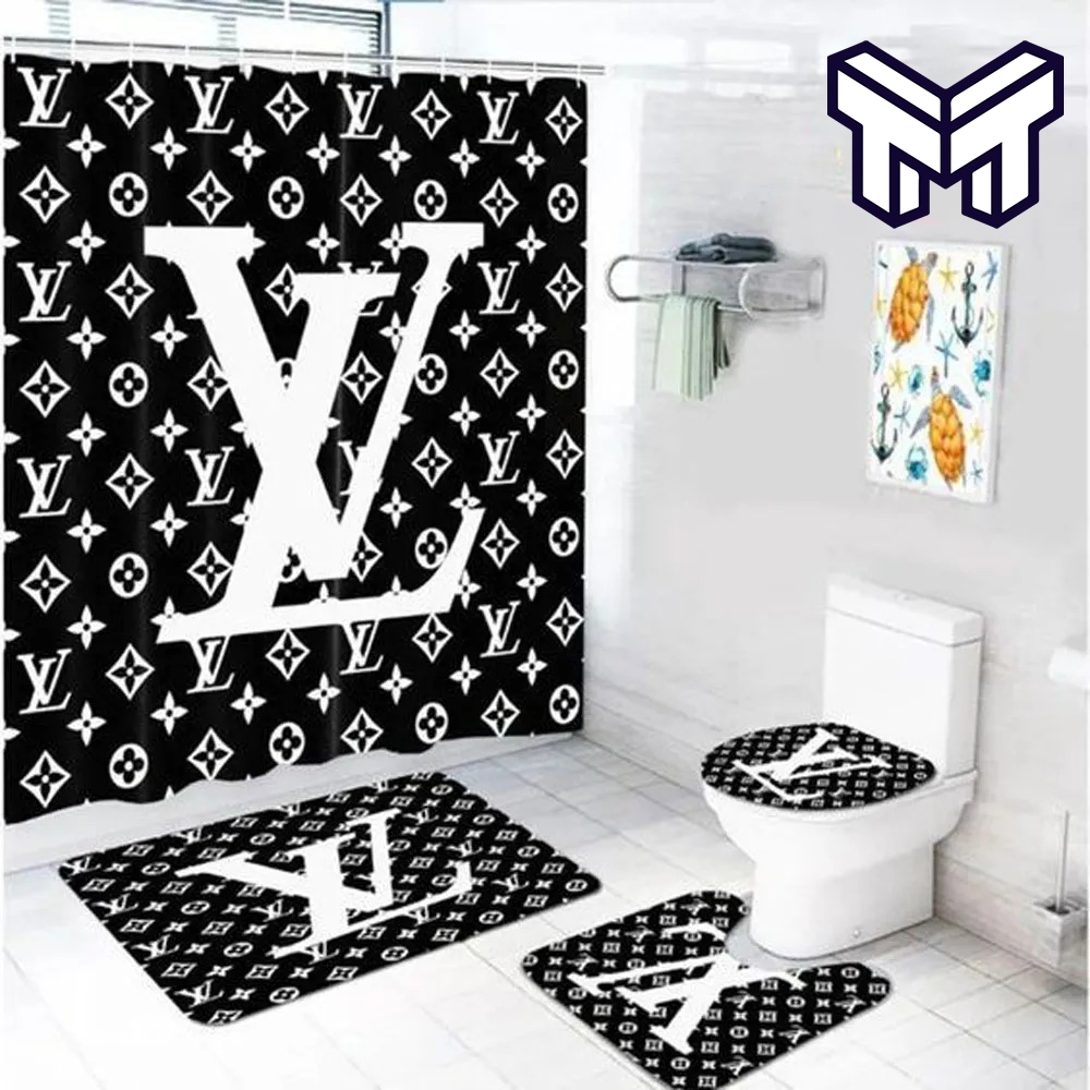 LV2 Monogram Big Logo Fashion Luxury Brand Premium Bathroom Set NNA Home Decor Shower Curtain And Rug Toilet Seat Lid Covers Bathroom Set NNA