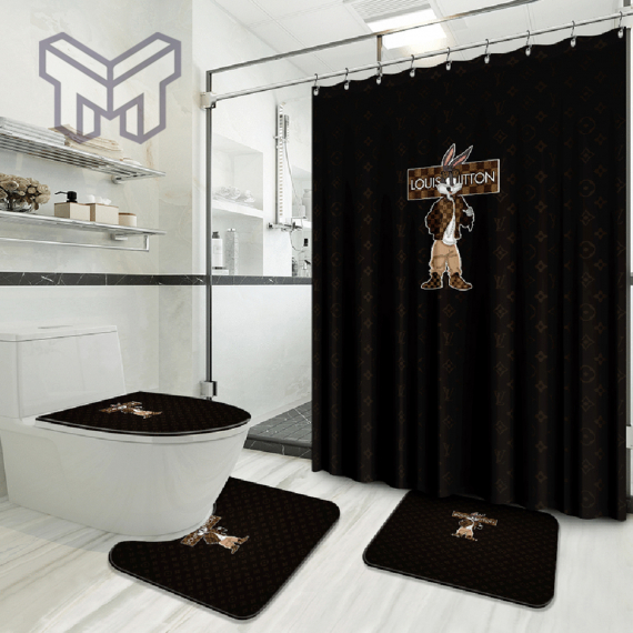 LV2 Rabbit Luxury Brand Logo Premium Bathroom Set NNA Home Decor Shower Curtain And Rug Toilet Seat Lid Covers Bathroom Set NNA
