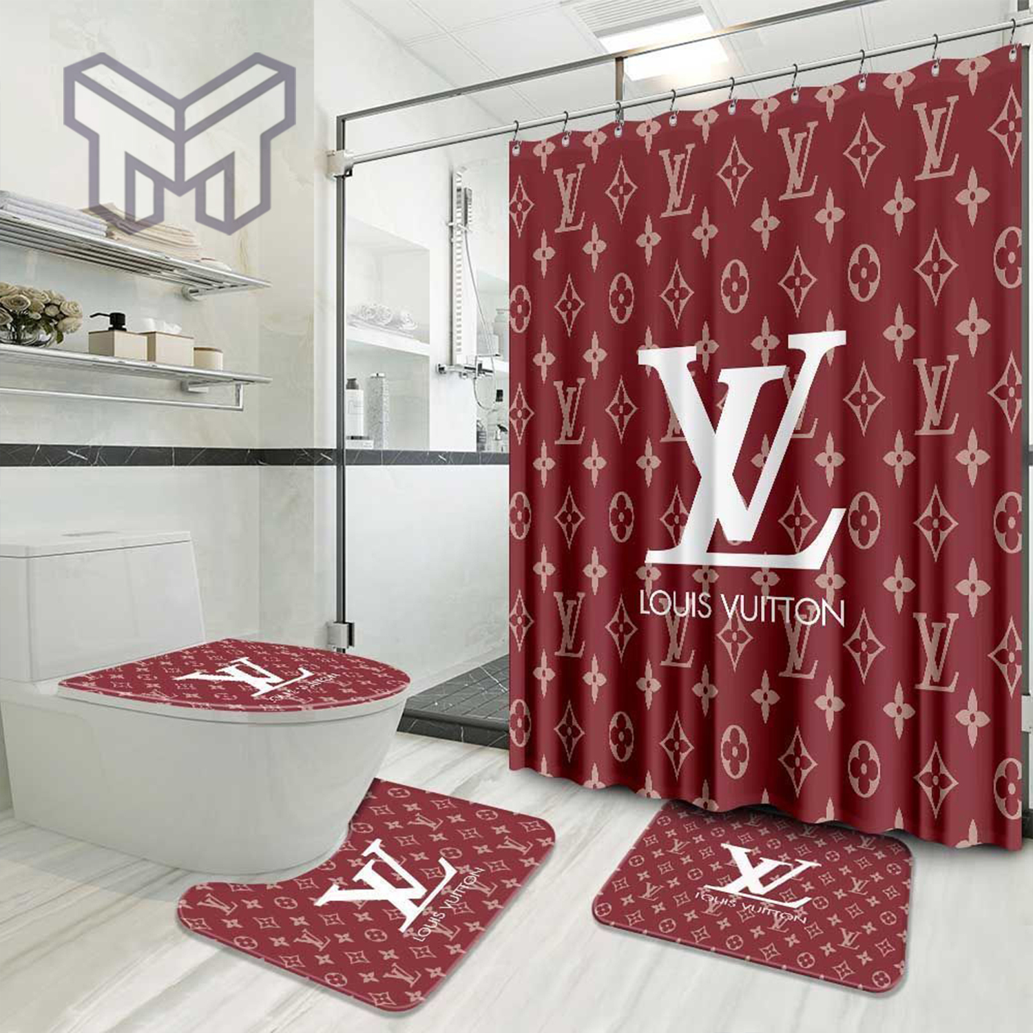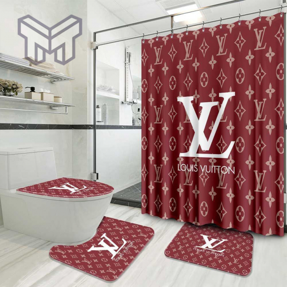 LV2 Red Luxury Brand Preium Bathroom Set NNA With Shower Curtain Shower Curtain And Rug Toilet Seat Lid Covers Bathroom Set NNA