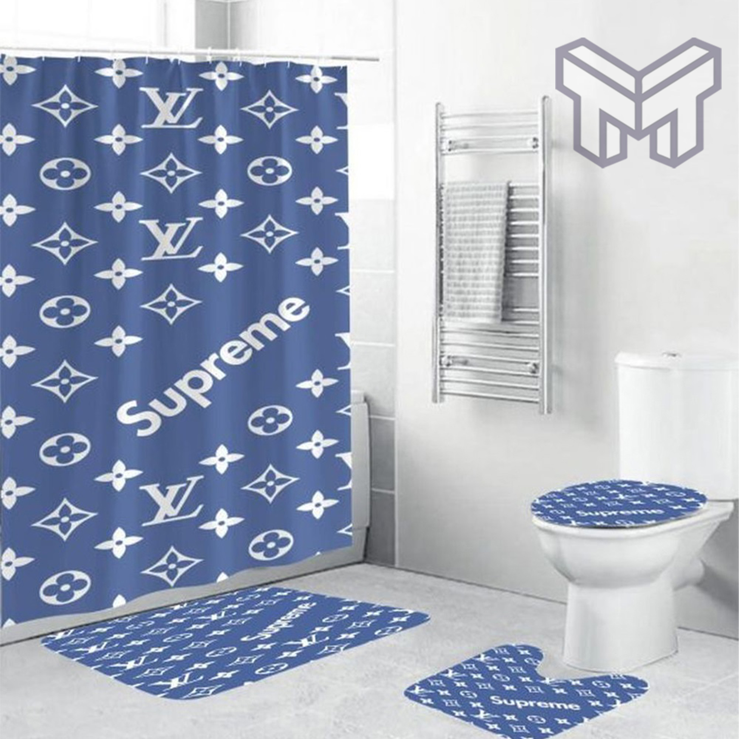 LV2 LV Bathroom Set Luxury Shower Curtain Bath Rug Mat Home Decor HT