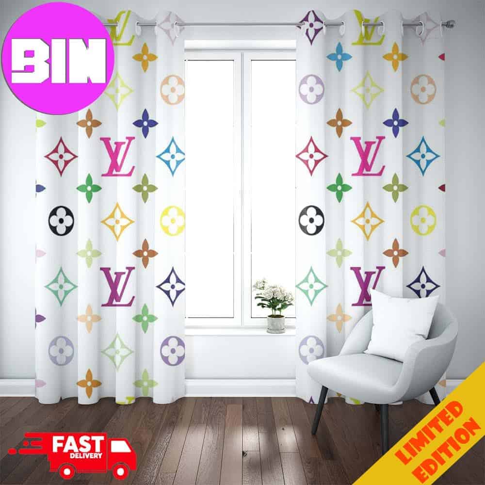 lv2 Window Curtain HG White Background And Colorful Logo Luxury Home Decor For Living Room And Bedroom