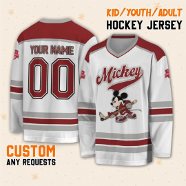 Personalize Mickey Hockey warrior Personalised Ice Team Sports Disneyland Family Vacation Birthday Gift For Fans Printed Hockey Jersey Shirt LN