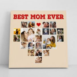 Custom Photo Mother Collage Best Mom Ever Mothers Day Heart Art Her Birthday Canvas And Poster