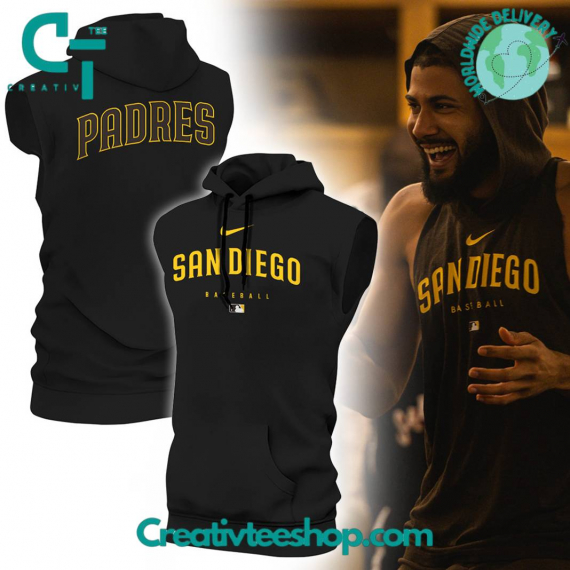 San Diego Padres Black Sleeveless Zip Up Hoodie Sleeveless Hoodie Unisex NVA