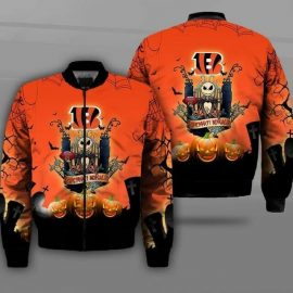 Cincinnati Unique Bengals Jack Skellington Halloween Bomber Jacket