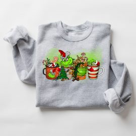 Family Christmas Coffee Grin Coffee Cup Design Gray Sport Sweatshirt