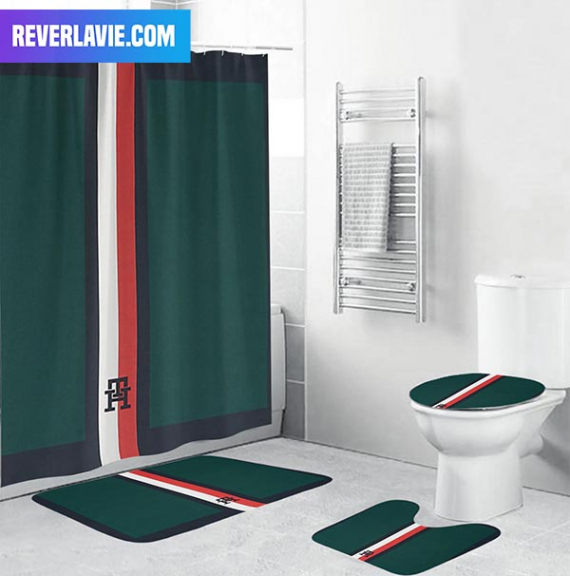 TH1 Fancy Logo In Deep Green Bath Rug Set and Shower Curtain HG