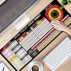 Music Theory Cheat Sheet with Circle of Fifths Mousepad, and Chord Building Table Mouse Mat, Educational Music Poster with Intervals Table Desk Mat KMH