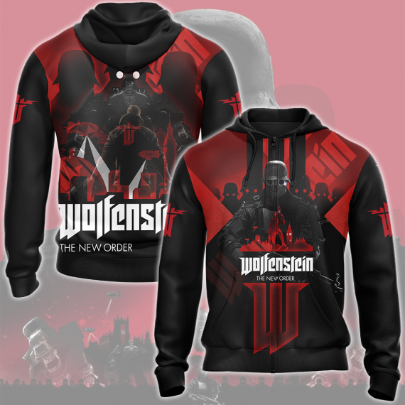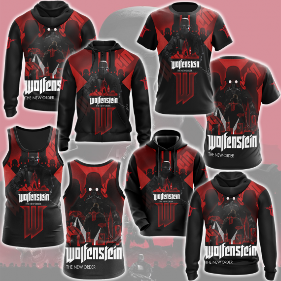 Wolfenstein The New Order Video Game All Over Printed T-shirt Tank Top Zip Hoodie Pullover Hoodie Hawaiian Shirt Beach Shorts Sweatpants NVA
