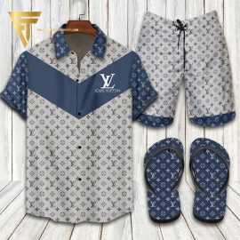 LV2 blue grey Hawaiian Shirt And Shorts Or Flip flops QDH