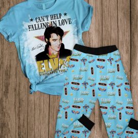 Gift For Elvis Presley Fan Can t Help Falling In Love Elvis Long Live The King Blue Christmas Gifts Pajamas Tshirt Pyjama Pant Set HG