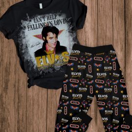 Gift For Elvis Presley Fan Can t Help Falling In Love Elvis Long Live The King Black Christmas Gifts Pajamas Tshirt Pyjama Pant Set HG