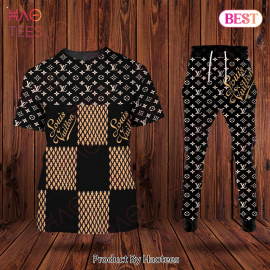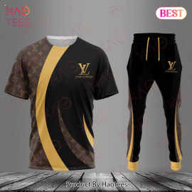 lv2 Black Brown Gold Luxury Brand T-Shirt And Pants HG Limited Edition