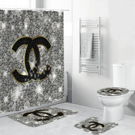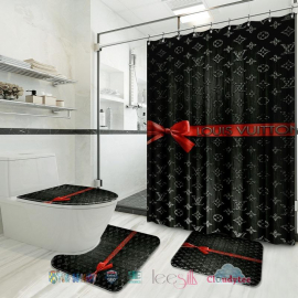 lv2 Black Luxury Full Bath Rug Set and Shower Curtain HG