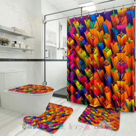 lv2 Colorful Luxury Full Bath Rug Set and Shower Curtain HG