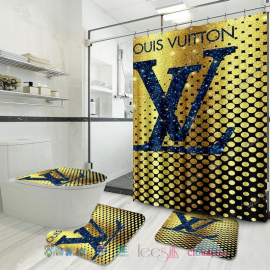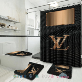 lv2 Black Gold Luxury Full Bath Rug Set and Shower Curtain HG