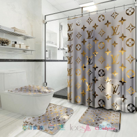 lv2 Flowers Luxury Full Bath Rug Set and Shower Curtain HG