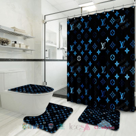 lv2 Blue Black Luxury Full Bath Rug Set and Shower Curtain HG