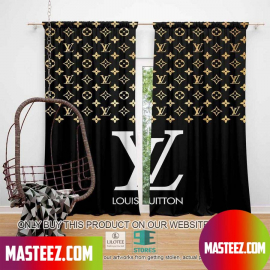 lv2 Gold Gradient Logo Black Luxuty Window Curtains HG