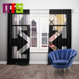Kaws x Off White Signature Logo Black Home Decor Luxuty Window Curtains HG