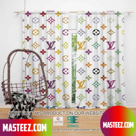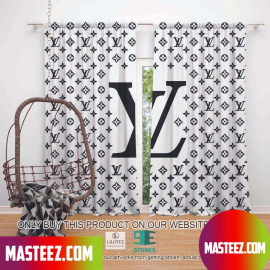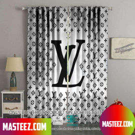 lv2 Big White Logo In Black Gackground Luxuty Window Curtains HG