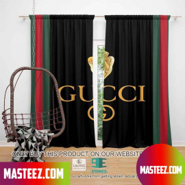 gc1 Gold Logo Red Green Line Pattern Black Luxury Window Curtain HG