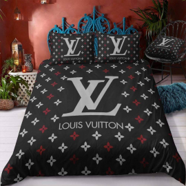 Basic Logo in Red Background lv2 luxury bedding set HG quilt sets duvet cover luxury brand bedroom sets Queen