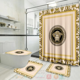 VSC Detailed Gold Pattern Curtain Bathroom Set Full Bath Rug Set and Shower Curtain HG Bathroom set