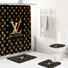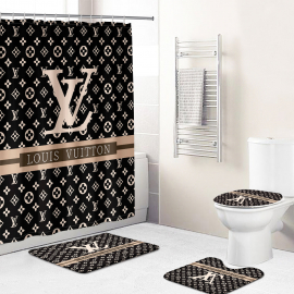 Shower curtains lv2 Black dark beige Full Bath Rug Set and Shower Curtain HG