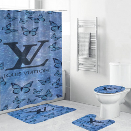 lv2 Big Logo In Butterfly Background Bath Rug Set and Shower Curtain HG
