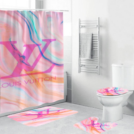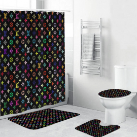 lv2 Colorful 3D Monogram Bath Rug Set and Shower Curtain HG