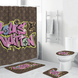 lv2 Graffiti In Signature Monogram Bathroom Set Bath Rug Set and Shower Curtain HG