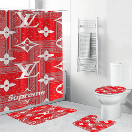 lv2 Blue Monogram Bathroom Set Bath Rug Set and Shower Curtain HG