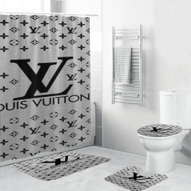 lv2 Brown Signature Monogram Bathroom Set Bath Rug Set and Shower Curtain HG