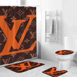 lv2 Big Orange Logo Bathroom Set Bath Rug Set and Shower Curtain HG