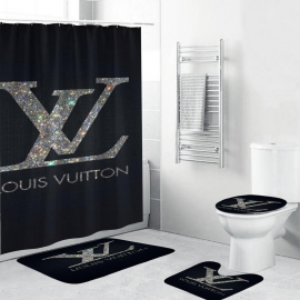 lv2 Glitter Logo In Black Background Bath Rug Set and Shower Curtain HG