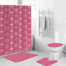 lv2 Monogram In Sand Pink Bathroom Set Bath Rug Set and Shower Curtain HG