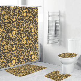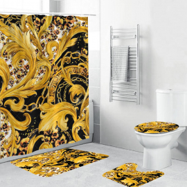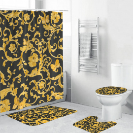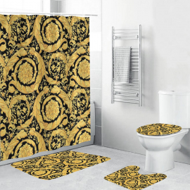 VSC Big Baroque Pattern Bathroom Bath Rug Set and Shower Curtain HG