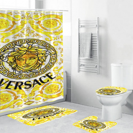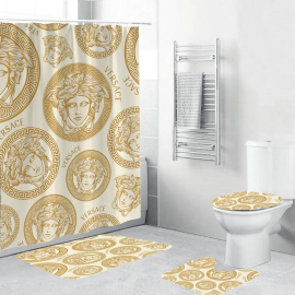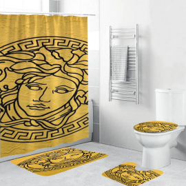 VSC Big Medusa Logo In Golden Background Bathroom Bath Rug Set and Shower Curtain HG