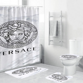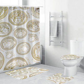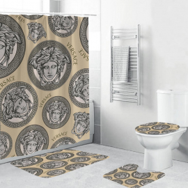 VSC Basic Medusa With Baroque And Greca Framed Bath Rug Set and Shower Curtain HG