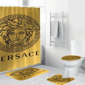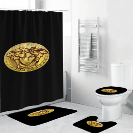 VSC Golden Medusa Face In Black Bathroom Bath Rug Set and Shower Curtain HG