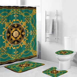 VSC Royal Green And Gold Chains Bath Rug Set and Shower Curtain HG