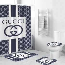 gc1 Vintage Logo In Signature Monogram Background Bath Rug Set and Shower Curtain HG With Bath Rug Set and Shower Curtain HG